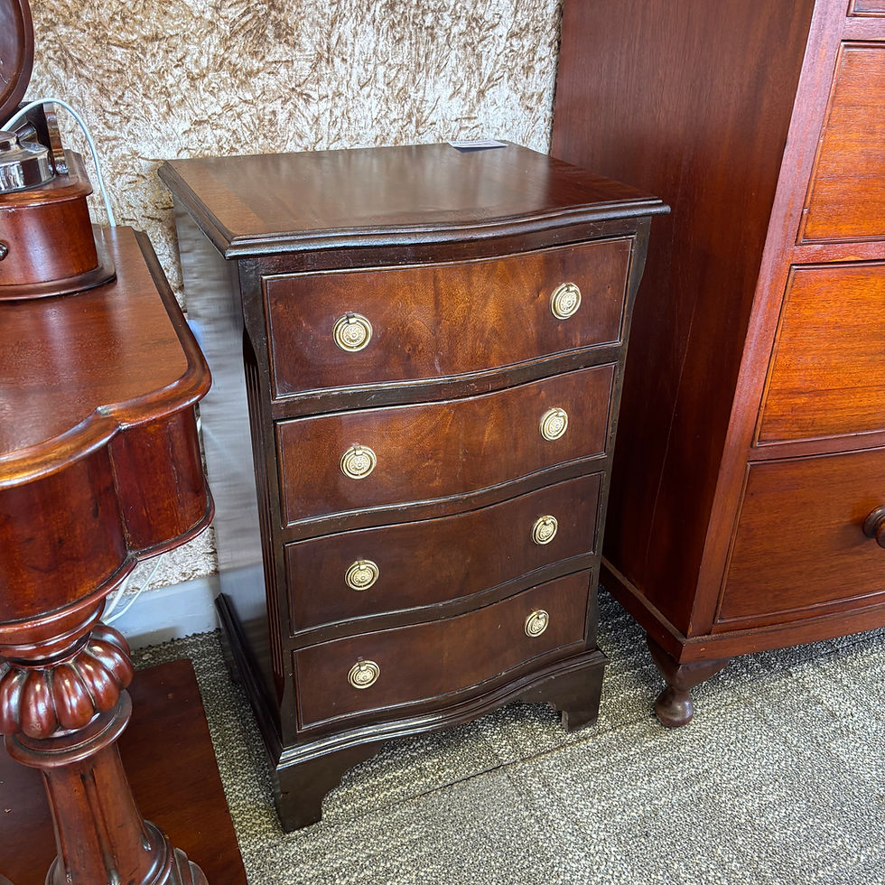 20th century mahogany chest of 4 drawers with serpentine front on bracket feet.
