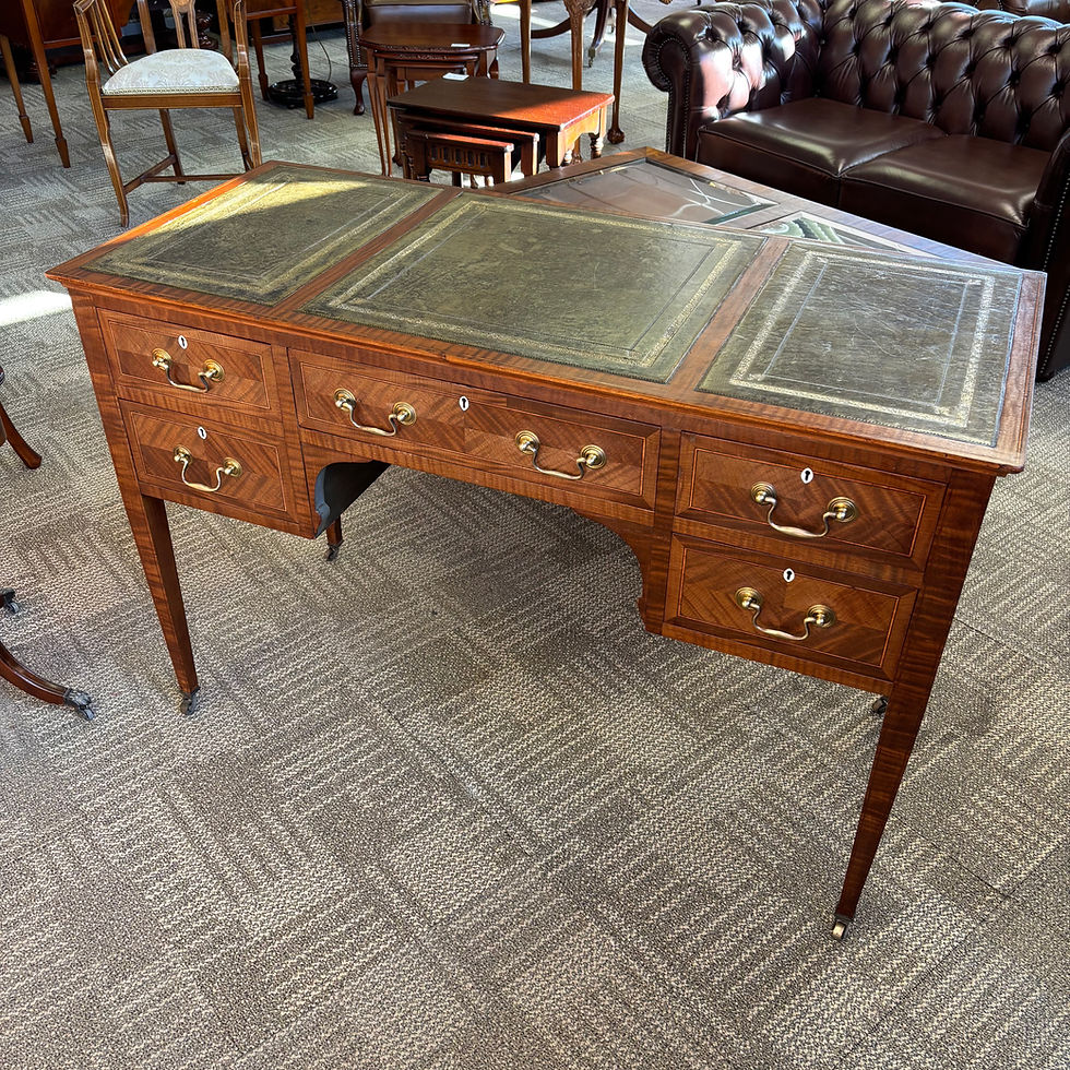 Early 20th century inlaid writing desk with leather insert top & 5 drawers